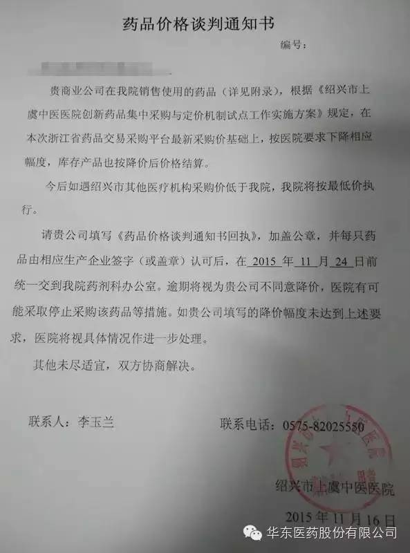 2.企業(yè)接到‘’藥品采購(gòu)談判通知書‘’后填回執(zhí),代表簽名,企業(yè)蓋章后于11月25號(hào)前交到華東相關(guān)采購(gòu)員;