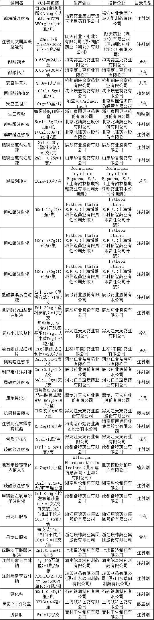 615藥品納入短缺及其他藥品掛網(wǎng)目錄