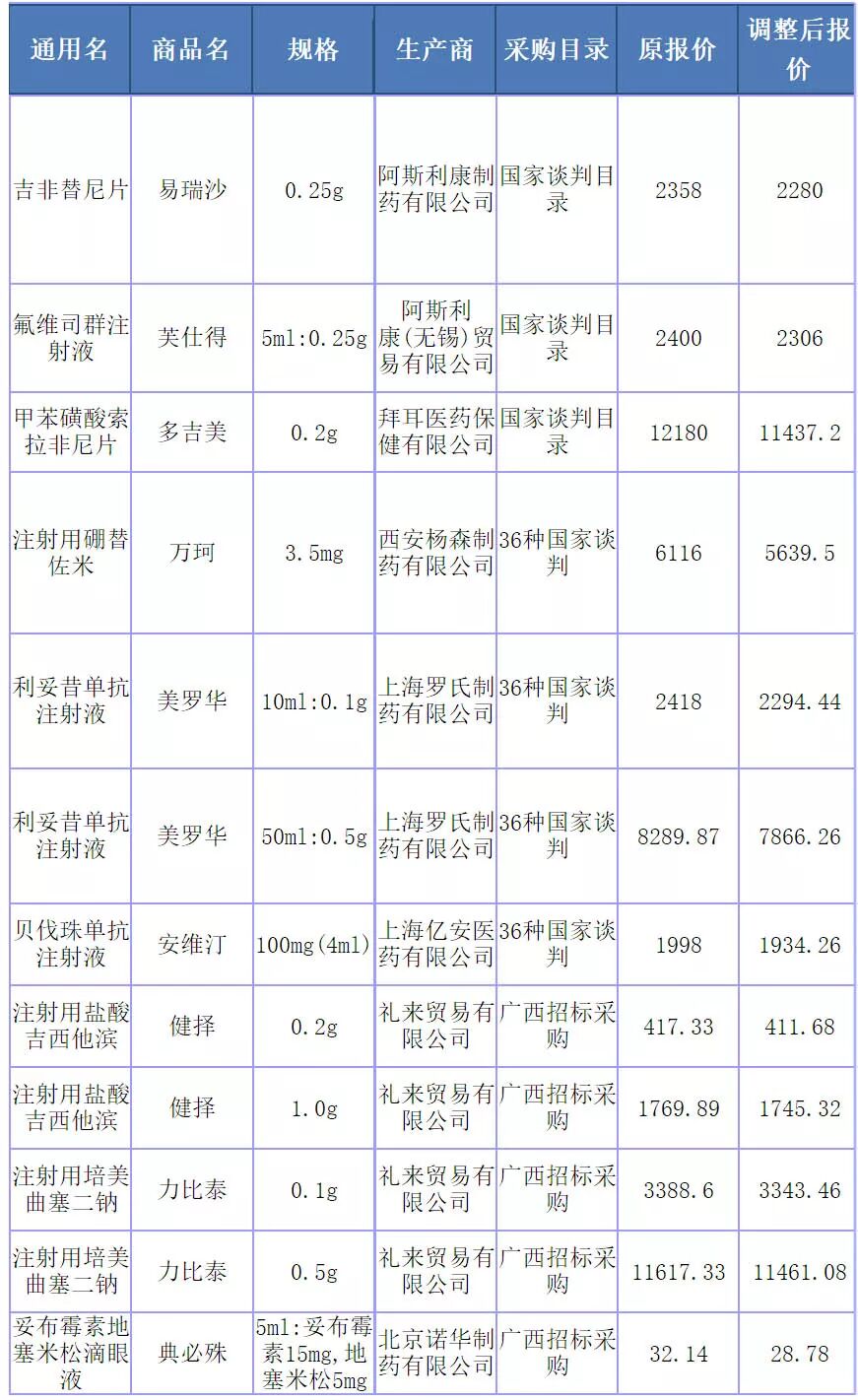 《通知》顯示,近期,阿斯利康等公司向我廣西公共資源交易中心,主動(dòng)申請(qǐng)降低部分藥品供貨價(jià)格。屬于國(guó)家談判、招標(biāo)采購(gòu)目錄內(nèi)的有12個(gè);屬于直接掛網(wǎng)的26個(gè)。
