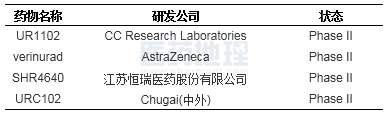 表2 全球臨床在研URAT1抑制劑研發(fā)概況