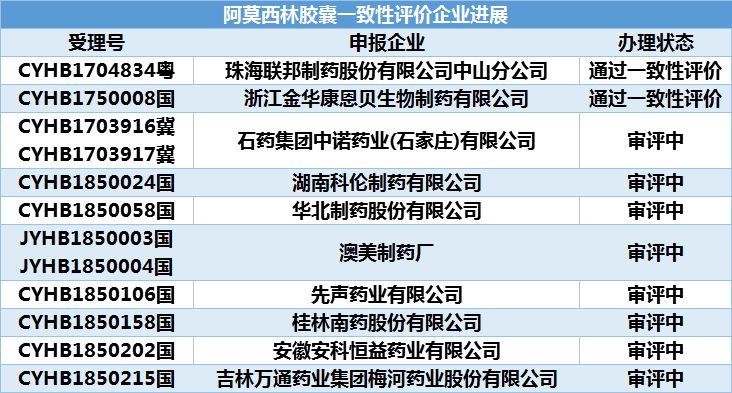 在康恩貝之前,聯(lián)邦制藥的阿莫西林膠囊已經(jīng)通過了一致性評價批準(zhǔn)生產(chǎn)。對于阿莫西林這個品種來說,競爭十分激烈,申報了一致性評價的共有10家企業(yè)12個受理號。