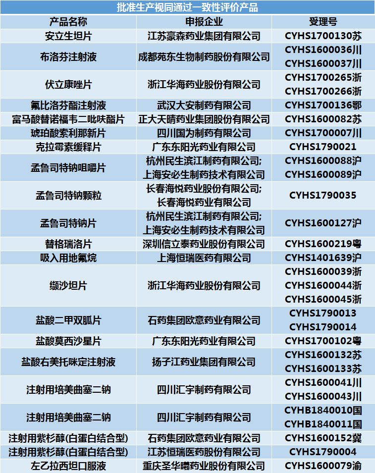 批準(zhǔn)生產(chǎn)視同通過一致性評價的產(chǎn)品