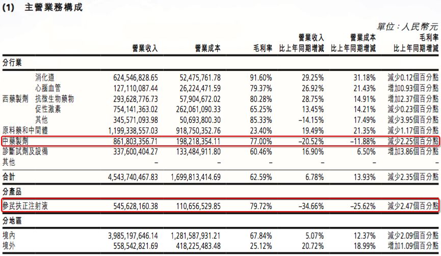 從主營(yíng)業(yè)務(wù)構(gòu)成我們可以看到,中藥制劑和參芪扶正注射液營(yíng)業(yè)收入下降明顯,尤其是作為其主打產(chǎn)品的參芪扶正注射液,2018年上半年?duì)I業(yè)收入下降34.66%。