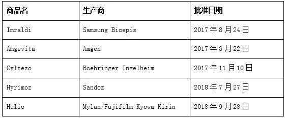 表1 歐盟EMA批準(zhǔn)的Humira生物類(lèi)似藥