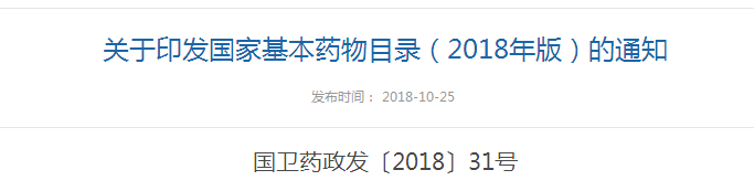關(guān)于印發(fā)國家基本藥物目錄(2018年版)的通知