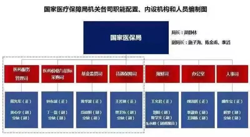 今年5月31日,國家醫(yī)療保障局掛牌。胡靜林任局長,施子海、陳金甫、李滔任副局長。