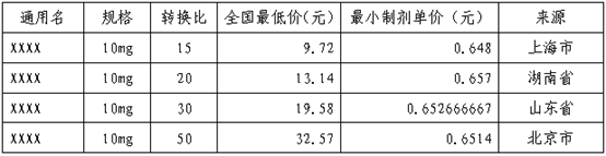 2.涉及多個不同轉(zhuǎn)換比產(chǎn)品,以浙江省的最小制劑單價中最低價和其他?。ㄊ校┑淖钚≈苿﹩蝺r中最低價進(jìn)行比較: