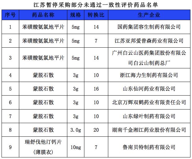 這是江蘇省首次發(fā)布通知暫停采購(gòu)未過(guò)一致性評(píng)價(jià)藥品。根據(jù)通知,有9個(gè)藥品被暫停采購(gòu),共涉及9家藥企。具體名單如下: