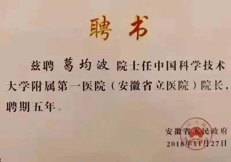 健康界獲悉,2018年11月27日,中國科學(xué)院院士、我國著名心臟病學(xué)專家葛均波正式被任命為中國科學(xué)技術(shù)大學(xué)附屬第一醫(yī)院(安徽省立醫(yī)院)院長,聘期為五年。
