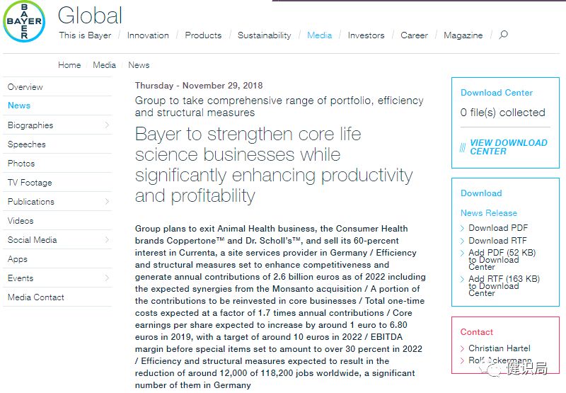 昨天(11月29日),拜耳宣布出售部分業(yè)務(wù),全球裁員約12000人,減損33億歐元(38億美元),整個計劃將在2021年完成。