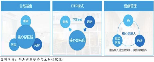 目前,處方外流主要有三種模式:自然溢出、DTP模式、慢病管理。