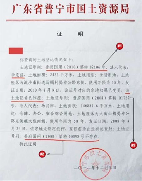 司法案卷顯示,康美藥業(yè)的老板馬興田親自出馬,行賄普寧上級(jí)揭陽(yáng)市委書記陳弘平500萬港幣,陳弘平交代說是為了馬興田當(dāng)選全國(guó)人大代表提供幫助。馬興田是2008年當(dāng)選為第十一屆全國(guó)人大代表,巧合的是莫須有的土地證就是在那一年開始出現(xiàn)的。