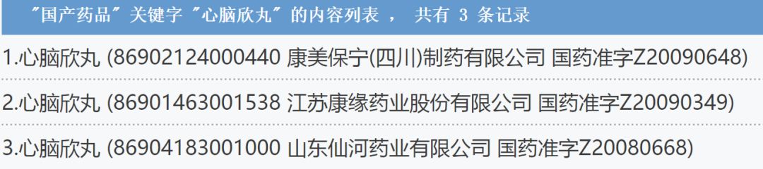 而金銀花軟膠囊則是浙江維康藥業(yè)的獨(dú)家品種,心腦欣丸目前全國(guó)也只有三個(gè)批文,涉及康美保寧、江蘇康緣、山東河仙三家藥企。