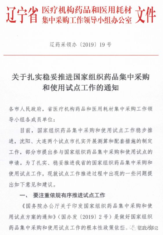 今日(2月28日),遼寧省發(fā)布《關(guān)于扎實(shí)穩(wěn)妥推進(jìn)國(guó)家組織藥品集中采購(gòu)和使用試點(diǎn)工作的通如》,通知表示,部分市提出參與國(guó)家組織藥品集中采購(gòu)和使用試點(diǎn)的申請(qǐng)。遼寧省專文發(fā)文回應(yīng)了此事。