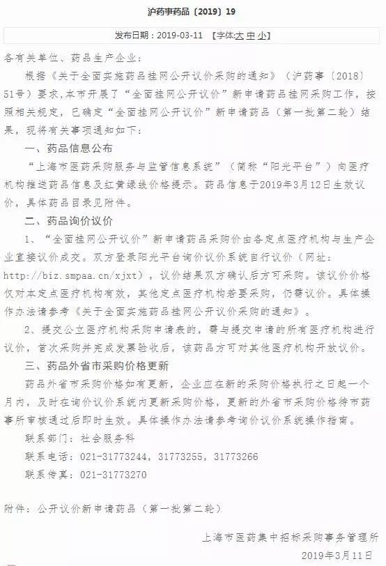 2019)19號(hào)關(guān)于公布全面實(shí)施藥品掛網(wǎng)公開(kāi)議價(jià)采購(gòu)新申請(qǐng)藥品(第一批第二輪)結(jié)果的通知