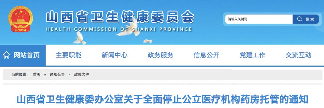 近日,山西省衛(wèi)健委印發(fā)《關(guān)于全面停止公立醫(yī)療機(jī)構(gòu)藥房托管的通知》。這是繼廣東之后,又一省發(fā)文禁止藥房托管,且明確給出了時(shí)限要求。