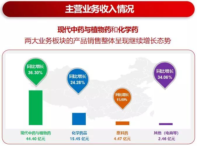 2018年,公司實(shí)現(xiàn)營(yíng)業(yè)收入67.87億元,比上年同期增長(zhǎng)28.20%,其中:醫(yī)藥工業(yè)收入66.78億元,比上年同期增長(zhǎng)31.70%,占營(yíng)業(yè)總收入的 98.39%,占比提高2.62個(gè)百分點(diǎn);實(shí)現(xiàn)歸屬于上市公司股東的凈利潤(rùn)8.04億元,比上年同期增長(zhǎng)13.03%;實(shí)現(xiàn)歸屬于上市公司股東的扣除非經(jīng)常性損益后的凈利潤(rùn)7.56億元,比上年同期增長(zhǎng)8.31%。